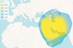 SES Astra muestra su presencia en otros mercados alejados de Europa y activa una frecuencia de su satélite Astra 3B (23,5º Este) cuyo haz de cobertura cubre la zona de Oriente Medio.